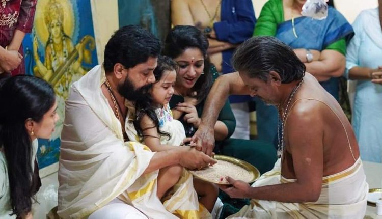 ആദ്യാക്ഷരം എഴുതാൻ എത്തിയ ദിലീപിന്റെയും കാവ്യയുടെയും മകൾ മഹാലക്ഷ്മി ചേച്ചിയുടെ കയ്യിൽ നിന്നും മാറാതെ അമ്പലനടയിൽ