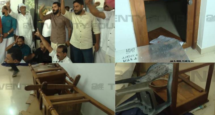 മലപ്പുറം കരുളായിയിൽ കാട്ടാന ആക്രമണത്തിൽ ആദിവാസി യുവാവ് കൊല്ലപ്പെട്ടതിൽ DMK പ്രതിഷേധം. നോർത്ത് ഡിഎഫ്ഒ ഓഫീസിന്റെ പൂട്ട് പൊളിച്ച് പ്രവർത്തകർ. കസേരകളും വാതിലും തകർത്തു. ആവർത്തിച്ചു വരുന്ന വന്യജീവി ആക്രമണങ്ങളിലാണ് പ്രതിഷേധം. പിവി അൻവറിന്റെ നേതൃത്വത്തിൽ ഡിഎഫ്ഒ ഓഫീസ് ഉപരോധിച്ചിരുന്നു. ഇതിന് പിന്നാലെയാണ് പ്രവർത്തകർ ഡിഎഫ്ഒ ഓഫീസ് ആക്രമിച്ചത്.
