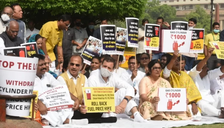 ഇന്ധന വില വർധയിൽ ലോകസഭയിൽ അടിയന്തര പ്രമേയത്തിന് കോൺഗ്രസ് നോട്ടീസ് നൽകി. എംപിമാരായ കൊടിക്കുന്നിൽ സുരേഷ്, വി കെ ശ്രീകണ്ഠൻ എന്നിവരാണ് നോട്ടീസ് നൽകിയത്. ഇന്ധന വിലവർധനവിൽ കേന്ദ്ര സർക്കാരിനെതിരേയുള്ള കോൺഗ്രസിന്റെ പ്രതിഷേധ പരിപാടികൾക്ക് തുടക്കം കുറിയ്ക്കുകയായിരുന്നു വിജയ് ചൗക്കിൽ. വിലക്കയറ്റരഹിത ഭാരത പ്രചാരണം എന്ന് പേരിട്ടിരിക്കുന്ന സമരത്തിൽ ഇന്ന് രാവിലെ 11 മണിക്ക് വീടുകൾക്ക് മുമ്പിലും പൊതുസ്ഥലങ്ങളിലും ഗ്യാസ് സിലിണ്ടറുകളിൽ മാലചാർത്തി പ്രതിഷേധിക്കും. സിലിണ്ടറിന് മുന്നിൽ നിന്ന് ചെണ്ട കൊട്ടിയും മണിയടിച്ചും പ്രതിഷേധിക്കാനും കോൺഗ്രസ് ആഹ്വാനം ചെയ്തിട്ടുണ്ട്. ഇന്ന് മുതൽ ഒരാഴ്ച നീളുന്ന രാജ്യവ്യാപക പ്രതിഷേധ പരിപാടികളാണ് സംഘടിപ്പിക്കുക.