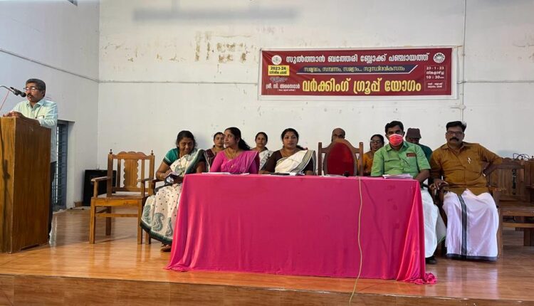 2023-24 വര്ഷത്തെ സുല്ത്താന് ബത്തേരി ബ്ലോക്ക് പഞ്ചായത്തിന്റെ വാര്ഷിക പദ്ധതി തയ്യാറാക്കുന്നതിന് മുന്നോടിയായി നടന്ന വര്ക്കിംഗ് ഗ്രുപ്പുകളുടെ യോഗം ബ്ലോക്ക് പഞ്ചായത്ത് പ്രസിഡന്റ് സി. അസൈനാര് ഉദ്ഘാടനം ചെയ്തു. ബ്ലോക്ക് പഞ്ചായത്ത് വൈസ് പ്രസിഡന്റ് അമ്പിളി സുധി അധ്യക്ഷത വഹിച്ചു. 13 വര്ക്കിംഗ് ഗ്രൂപ്പുകള് വിശദമായ ചര്ച്ചകള്ക്ക് ശേഷം നിര്ദേശങ്ങള് സമര്പ്പിച്ചു. വികസനകാര്യ സ്റ്റാന്ഡിംഗ് കമ്മിറ്റി ചെയര്പേഴ്സണ് ലത ശശി പദ്ധതിയുടെ ലക്ഷ്യങ്ങള് വിശദീകരിച്ചു.