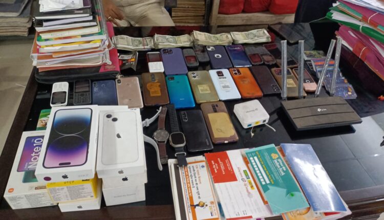 ഫോട്ടോ ക്യാപ്ഷന്: ഓണ്ലൈന് ലോട്ടറി തട്ടിപ്പിലൂടെ വീട്ടമ്മയെ പറ്റിച്ച് 1.12 കോടി രൂപ തട്ടിയെടുത്ത കേസില് റാഞ്ചിയില് കേരള പോലീസിന്റെ പിടിയിലായ പ്രതികളില് നിന്ന് കണ്ടെത്തിയ മൊബൈല് ഫോണുകള്, ബാങ്ക് പാസ് ബുക്കുകള്, ക്രെഡിറ്റ് കാര്ഡുകള്, കറന്സി എന്നിവ.